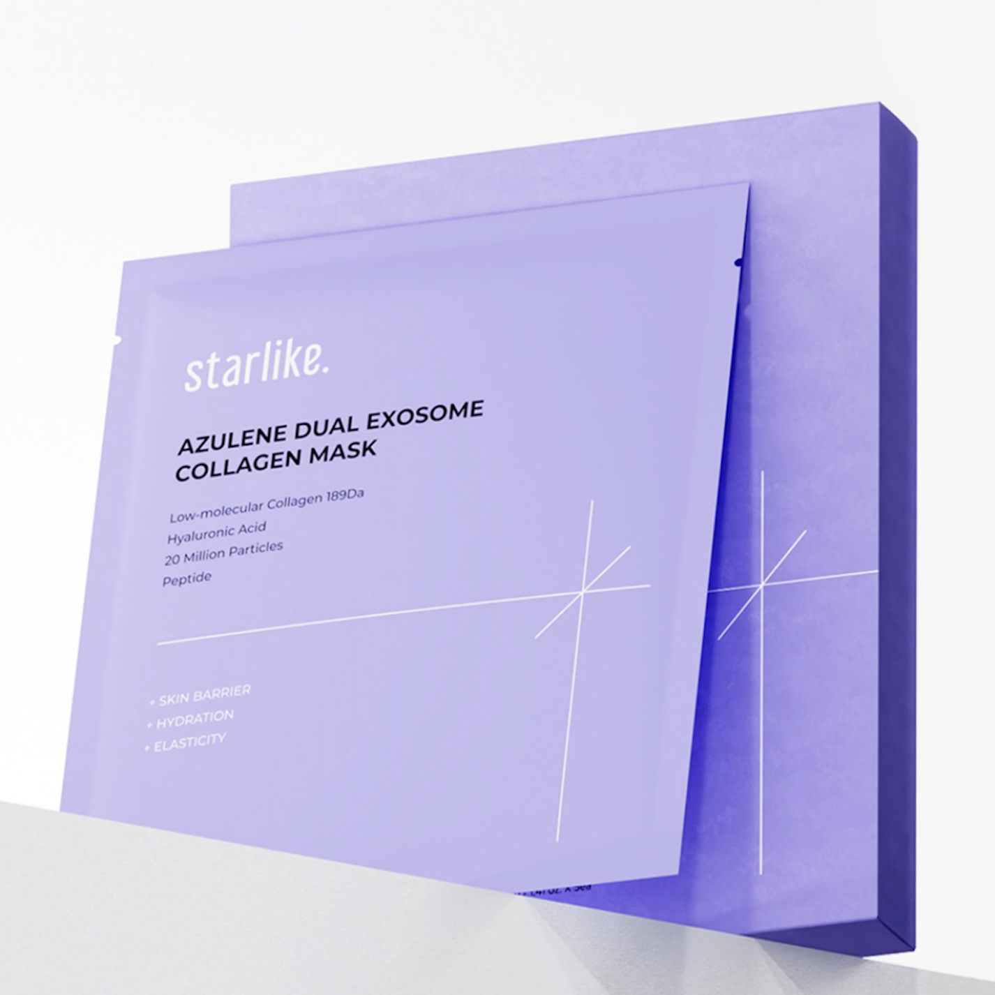 Starlike Azulene Dual Exosome Collagen Hydrogel Mask is not a regular mask but a hydrogel treatment that adheres closely to the skin, ensuring deep delivery of active ingredients. With low-molecular marine collagen, next-generation exosomes, and azulene, it provides intensive hydration, strengthening, and soothing effects while reducing irritation and redness.