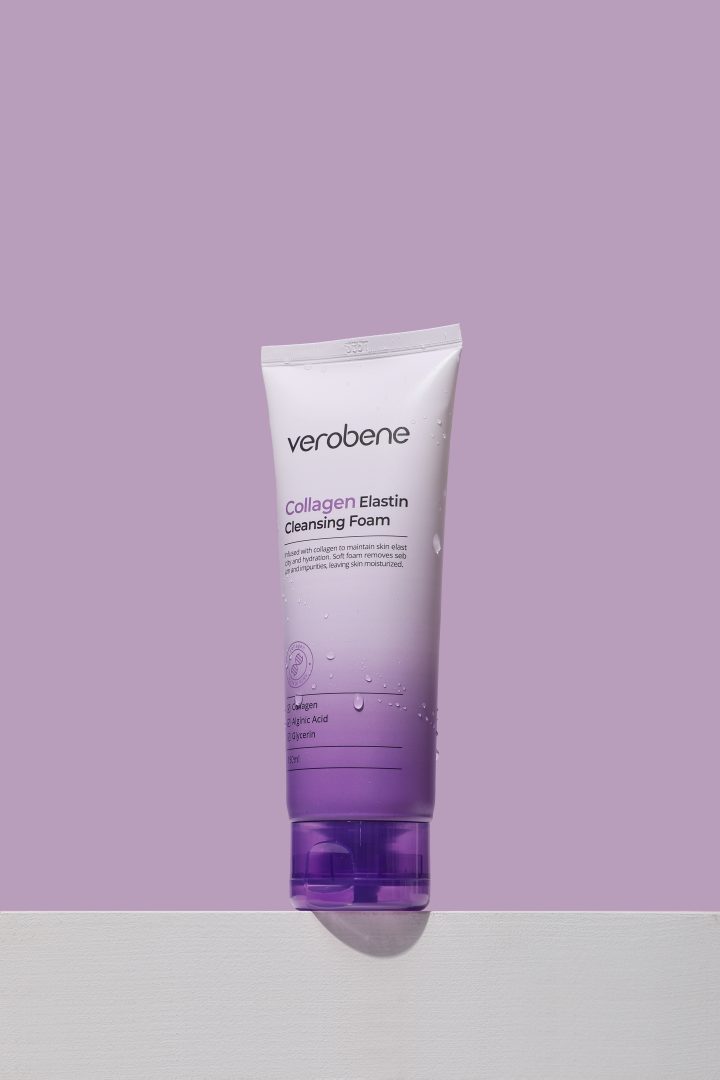 Verobene Collagen Elastin Cleansing Foam is a gentle cream-to-foam cleanser that effectively removes impurities, sunscreen, and light makeup without stripping the skin. Enriched with Hydrolyzed Collagen & Elastin, it helps maintain skin’s elasticity, while Panthenol and Glycerin provide long-lasting hydration. Allantoin soothes and softens, leaving the skin clean, fresh, and comfortable.