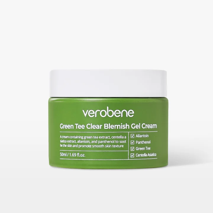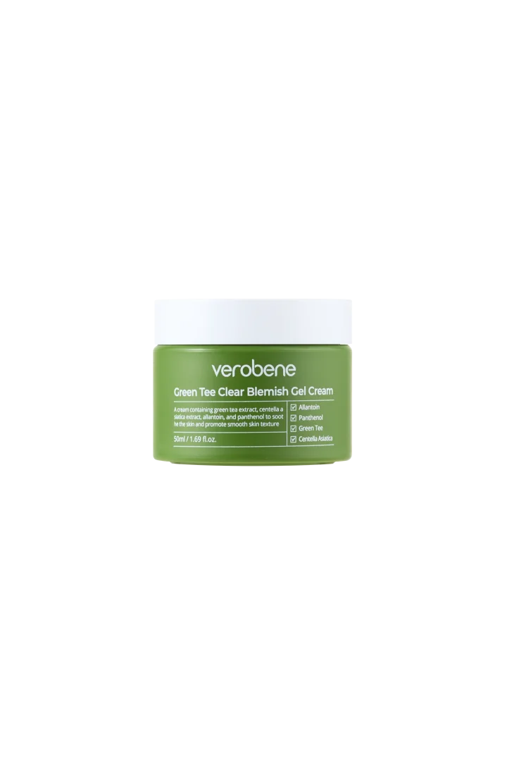 VEROBENE Green Tea Clear Blemish Gel Cream a lightweight gel-cream specially formulated for combination, oily, and sensitive skin. Green tea, centella, portulaca, and pine leaf extracts soothe irritation, reduce redness, and protect the skin from environmental stressors. Sodium hyaluronate, panthenol, and allantoin deliver deep hydration and reinforce the skin barrier. Niacinamide and adenosine help fade post-blemish marks, refine skin texture, and restore a healthy glow. The formula absorbs quickly, leaves no greasy residue, and is allergen-free.
