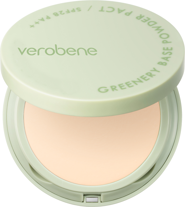 VEROBENE Greenery Base Powder Pact SPF28/PA++ is a daily essential for a flawless, shine-free finish. This pressed powder smooths pores, refines texture, and keeps skin comfortable all day long. Infused with D-Panthenol Recovery Complex™ and 11 Flower Burst Complex, it nourishes while providing a natural matte look. Lightweight and portable, it’s perfect for home use or quick touch-ups on the go. Suitable for all skin types, including sensitive skin.