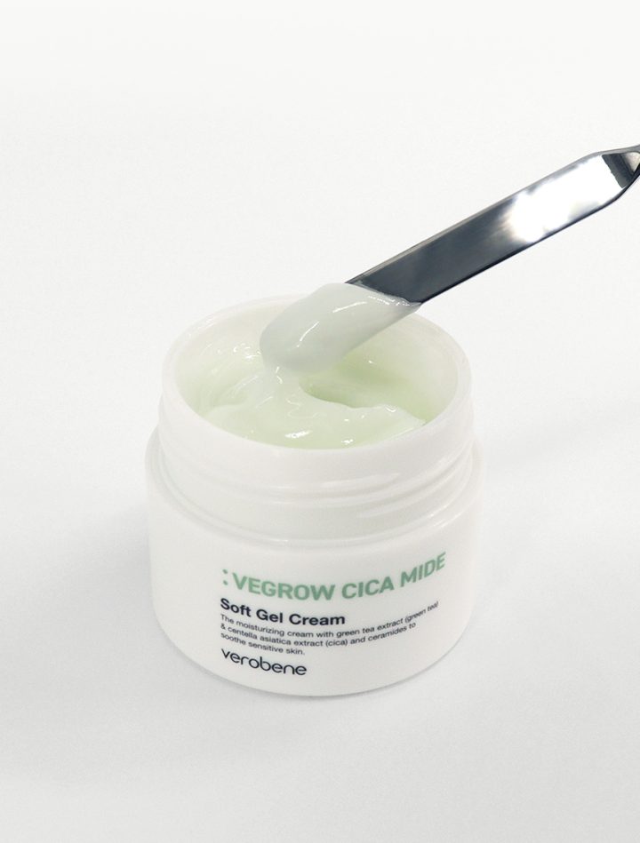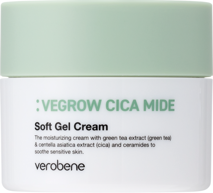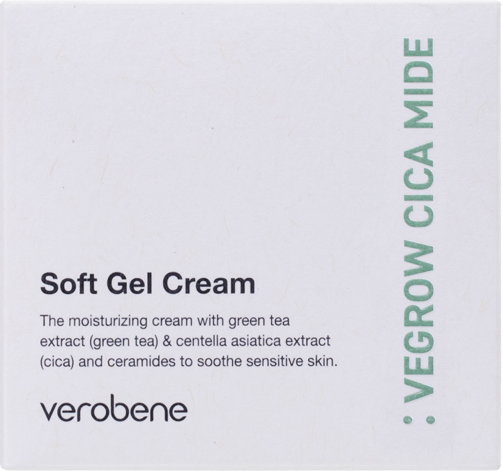 Verobene Vegrow Cica Mid Soft Gel Cream is a lightweight gel-cream designed to hydrate and restore the skin. Infused with Centella Asiatica and Green Tea extracts, it soothes, balances tone, and relieves post-cleanse tightness. Ceramide NP reinforces the skin barrier and locks in long-lasting moisture, helping to prevent dryness and irritation. The non-greasy formula absorbs quickly, making it suitable for sensitive, combination, and oily skin types. Perfect for both day and night care, it layers seamlessly under SPF and makeup