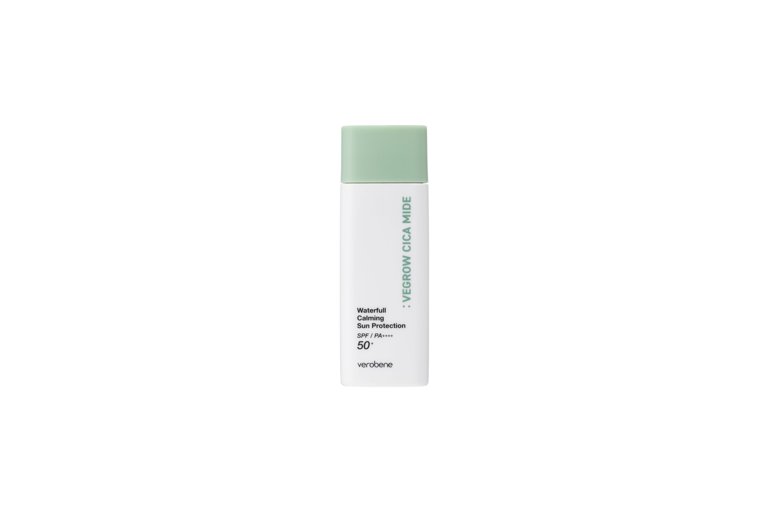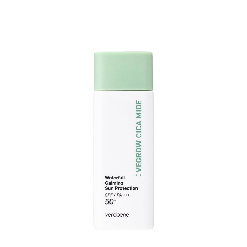 Verobene Vegrow Cica Mide Calming Sun Protection SPF 50+ PA++++ is a lightweight vegan sunscreen that delivers high UVA/UVB protection with modern chemical filters while keeping skin hydrated and calm. Its water-light texture leaves no white cast or greasiness, and panthenol helps to soothe and strengthen the barrier. Non-comedogenic and dermatologically tested, this sunscreen is ideal for sensitive and acne-prone skin, layering perfectly under makeup for all-day comfort.
